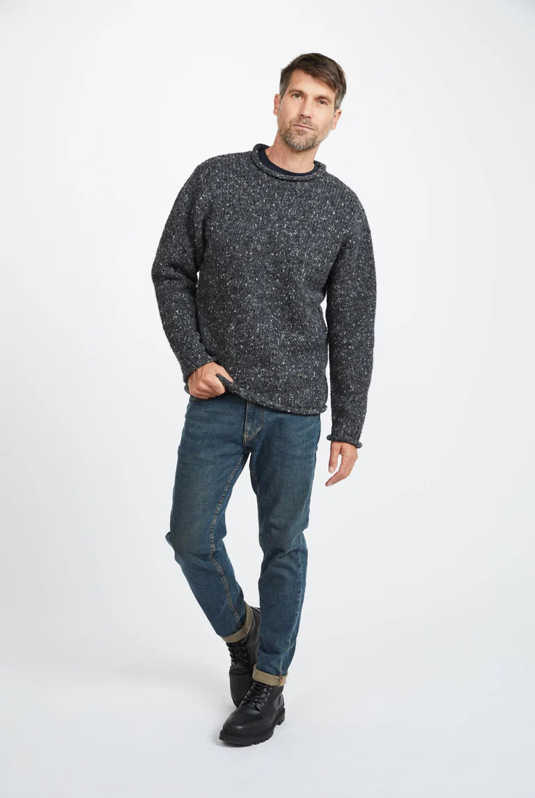The Raheen Tweed Roll Neck Sweater embodies heritage and tradition. With rolled crew neck, hem, and cuffs, it offers a flattering, relaxed fit. Crafted from 100% Pure New Wool for a smooth finish.