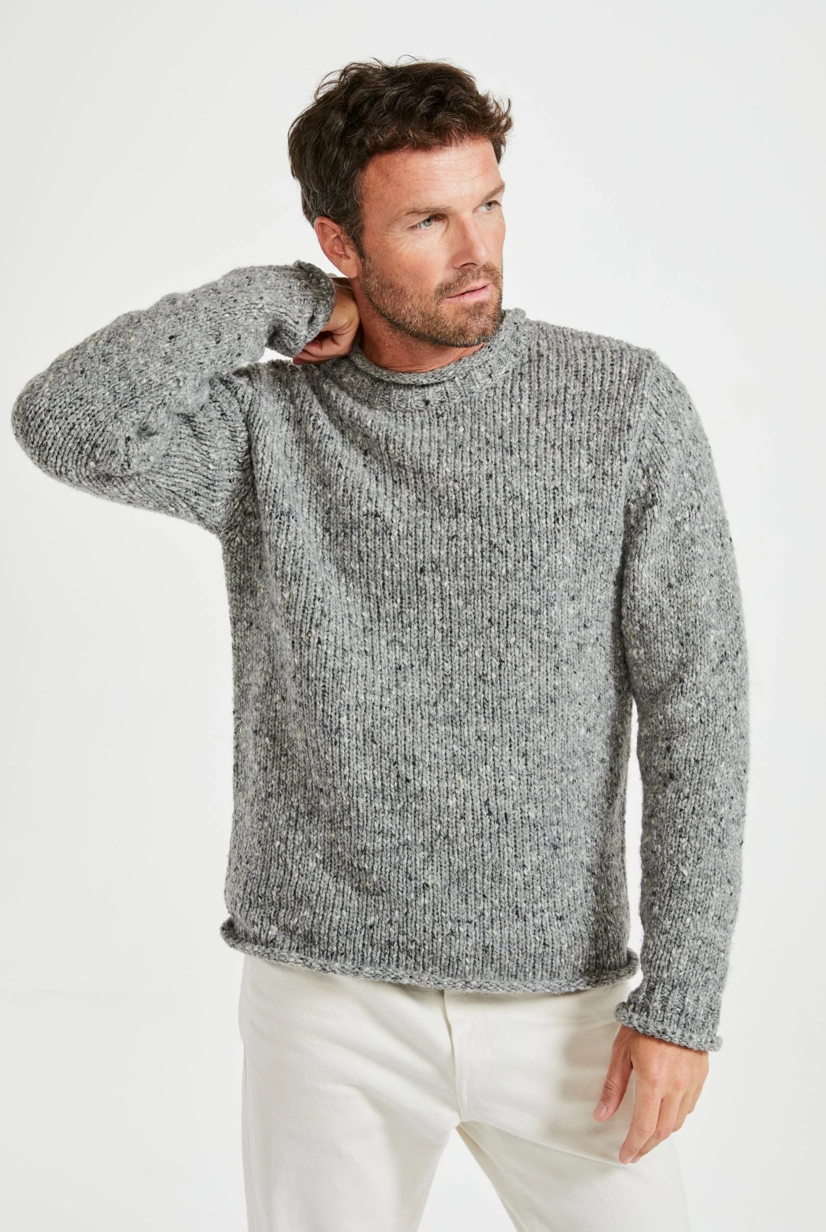 Raheen Tweed Roll Neck Mens Sweater - Light Grey