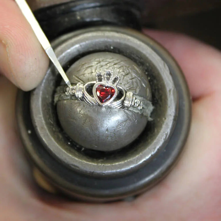 The Claddagh ring is a traditional Irish ring symbolizing love, loyalty and friendship. The heart represents love, the crown stands for loyalty, and the hands reflect friendship. It’s often given as a romantic gift, and how it’s worn can show if someone is single, dating, engaged or married.