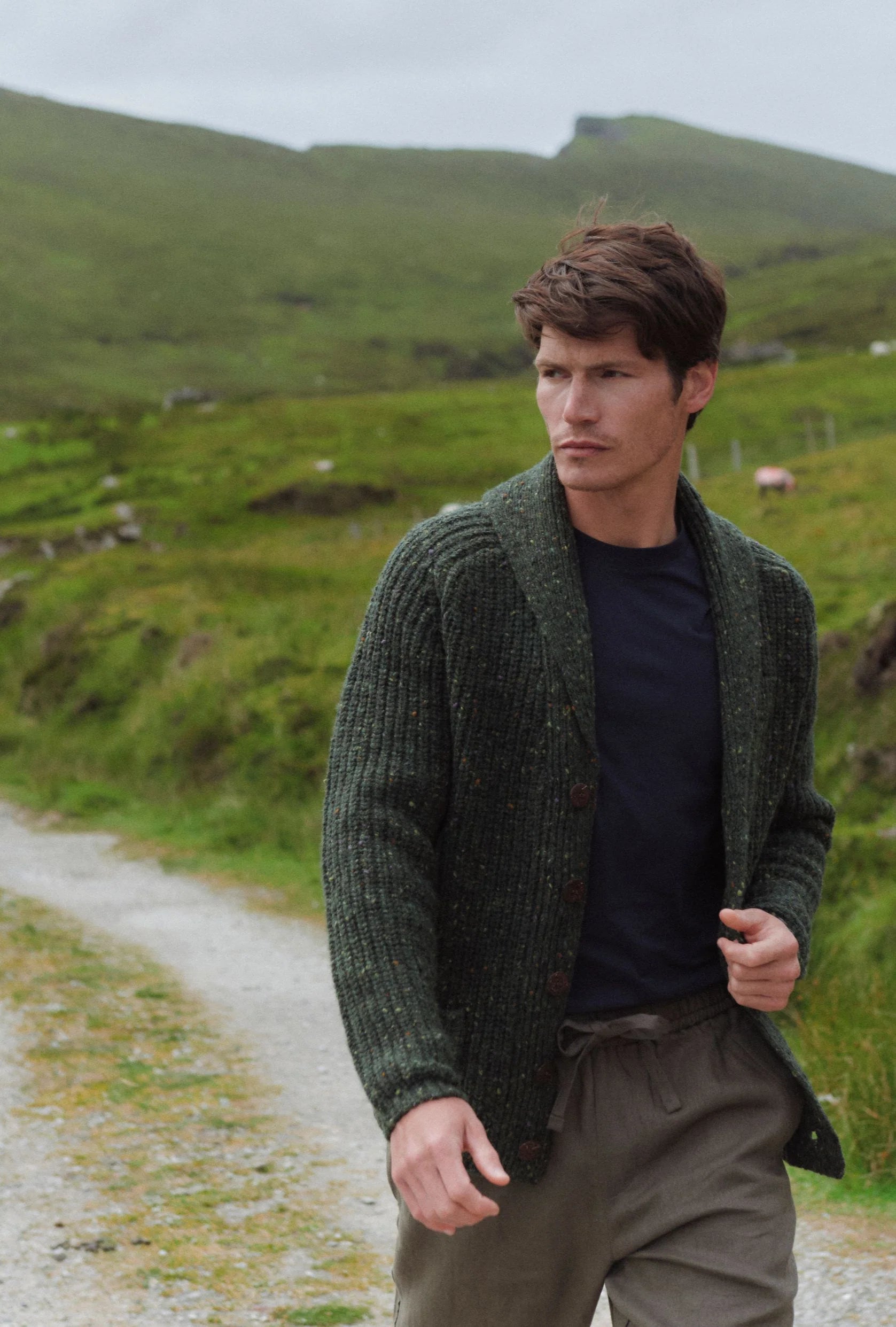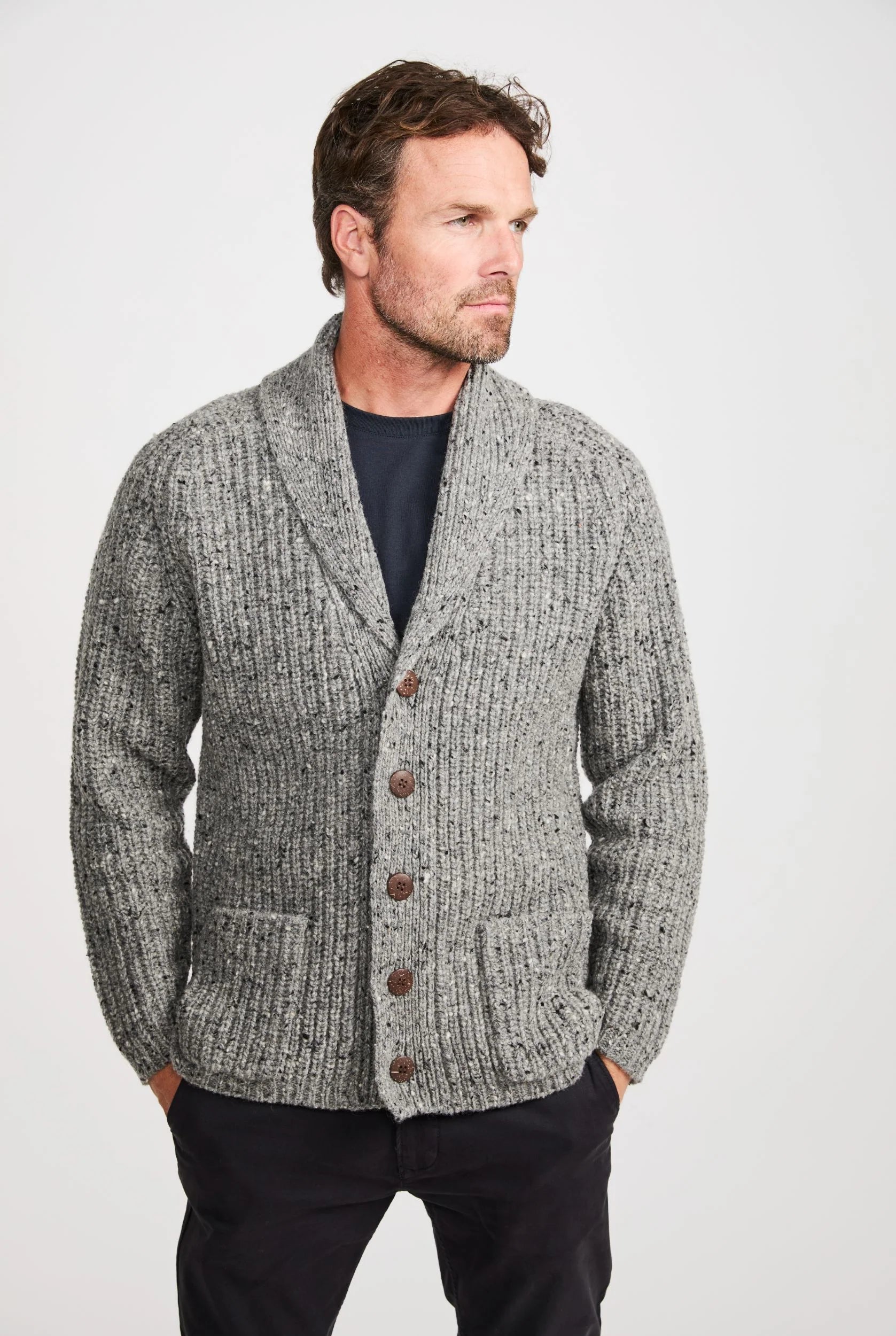 Curragh Mens Rib Shawl Cardigan